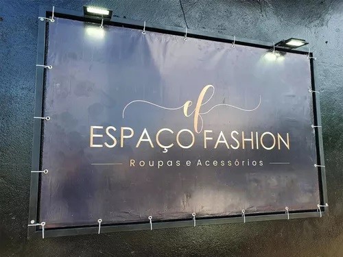 Lona feita em Lona 440g/m² com impressão digital solvente de 720dpis, inclui madeirites laterais, ponteiras e cordas para sustentação. Medidas: x m.- Garantia de 6 meses de desbotamento.