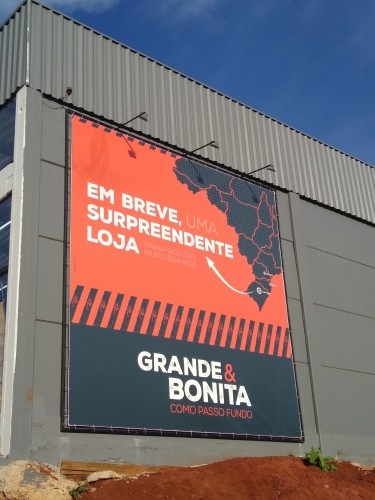 Lona feita em Lona 440g/m² com impressão digital solvente de 720dpis, inclui madeirites laterais, ponteiras e cordas para sustentação. Medidas: x m.- Garantia de 6 meses de desbotamento.